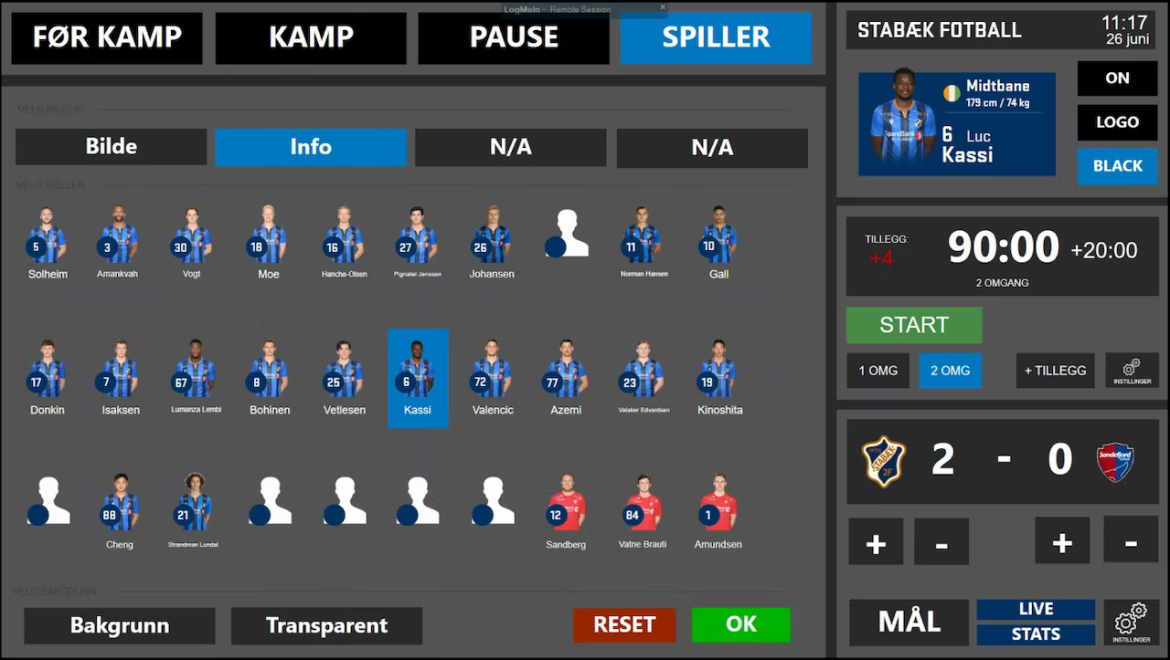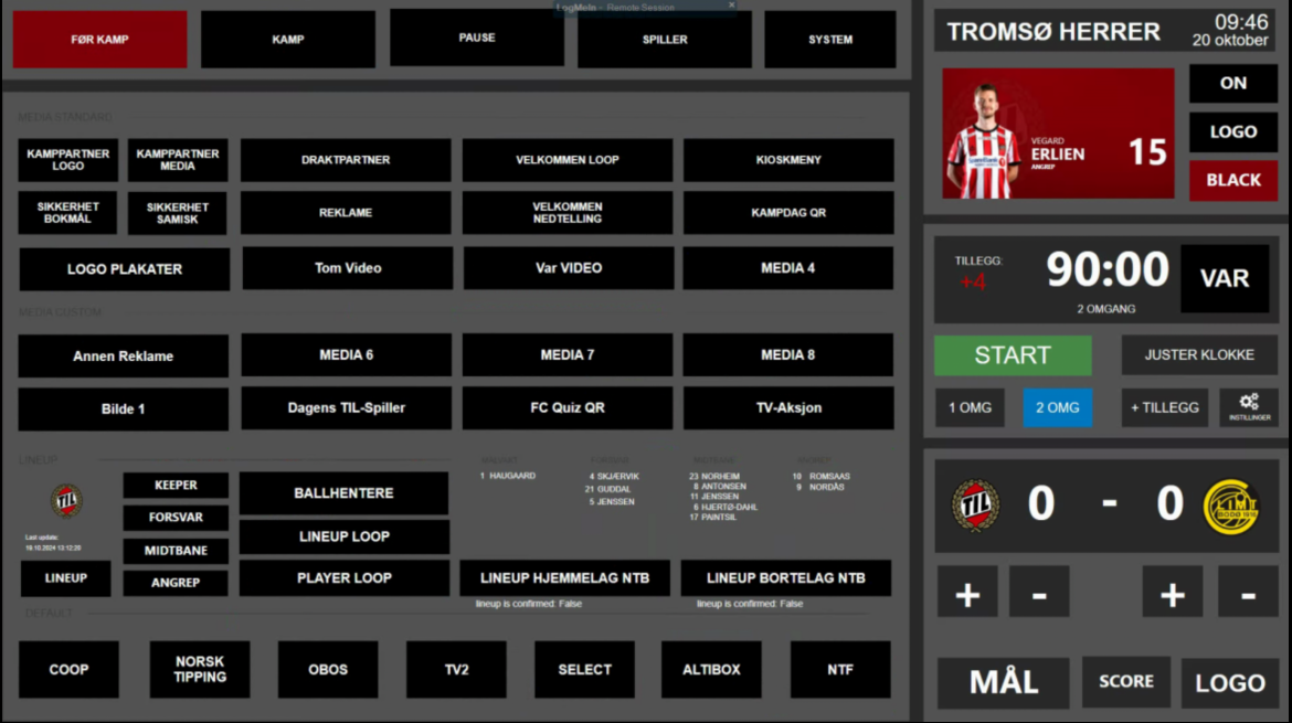 Alt styres fra et intuitivt kontrollpanel med touchskjerm, og innholdet oppdateres i sanntid. Løsningen er integrert med NTFs Fotballens Digitale Plattform (FDP) og støtter API-er for livedata, FIKS og CRM-systemer.